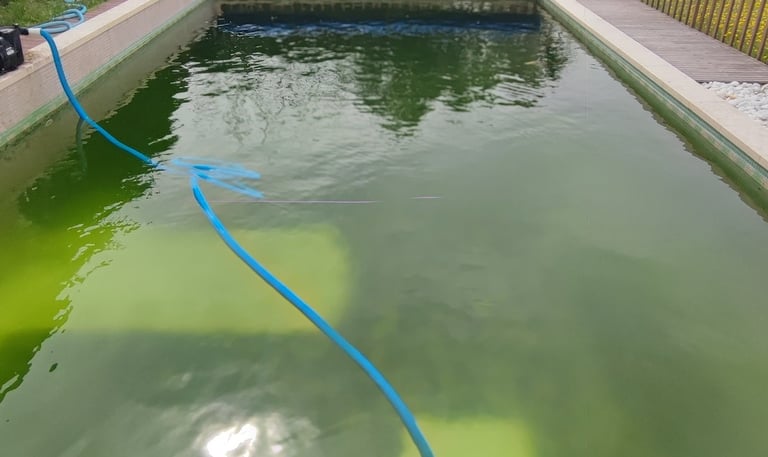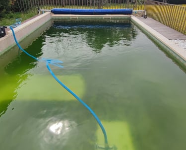 Evacuation par pompe externe de la couche de vase après chlore choc et floculant.